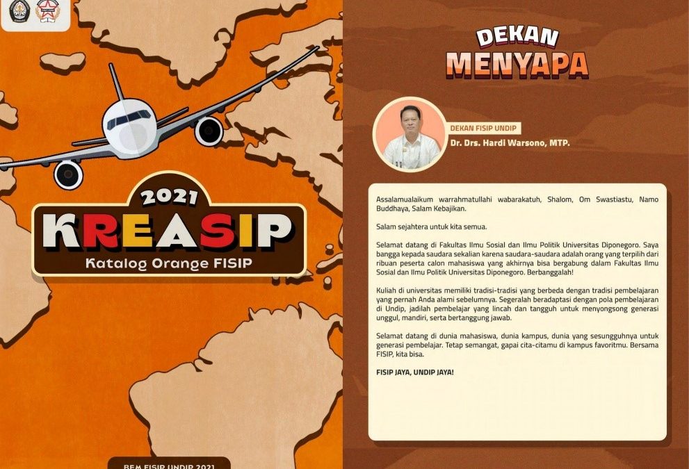 Semarang, 24 Agustus 2021 – Untuk menyambut kehadiran mahasiswa baru FISIP Undip 2021, Biro Komunikasi dan Informasi BEM FISIP Undip 2021 mengeluarkan inovasi baru dalam upaya memperkenalkan lingkungan kampus FISIP Undip dalam bentuk katalog yang diberi nama “KREASIP”.
