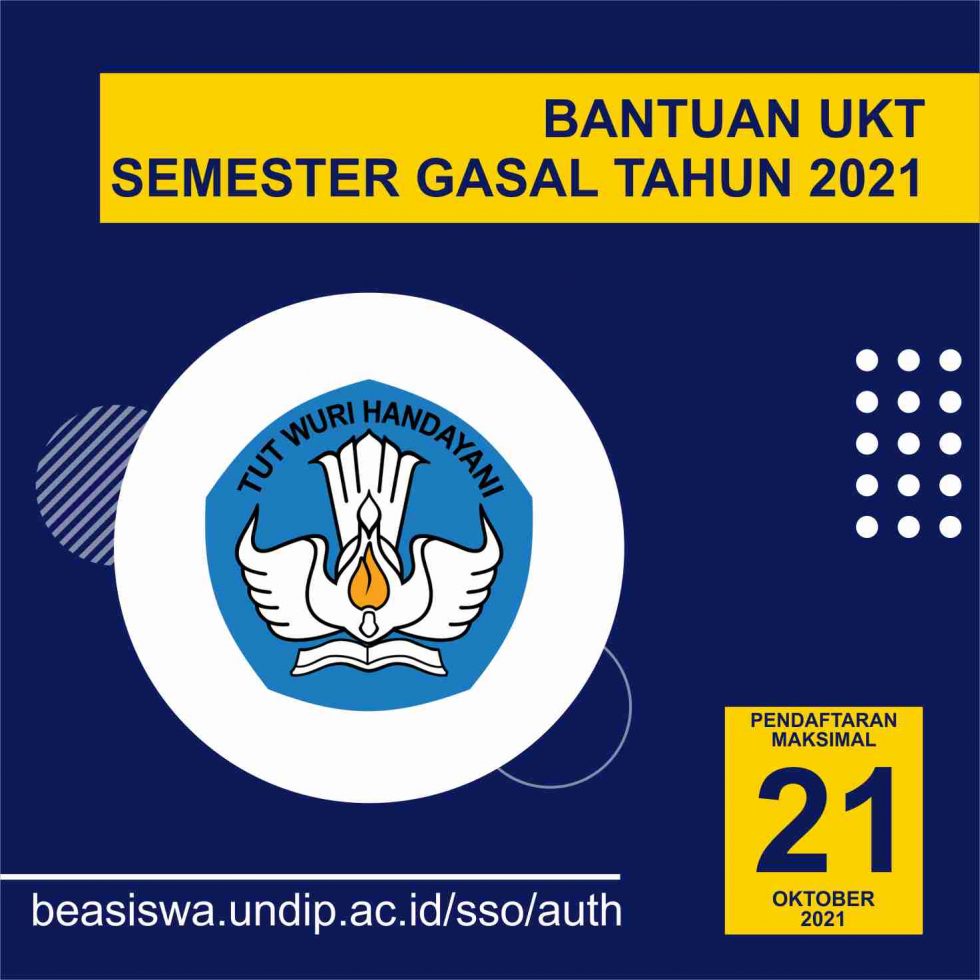 Berkenaan dengan surat dari Pusat Layanan Pembiayaan Pendidikan (Puslapdik) Nomor : 1098/J5/KM.01.00/2021 tanggal 6 Agustus 2021 perihal Penyaluran Bantuan UKT Semester Gasal T.A 2021/2022. Bersama ini disampaikan bahwa masih ada kuota Bantuan UKT semester gasal tahun Akademik 2021/2022 bagi mahasiswa dengan ketentuan sebagai berikut :