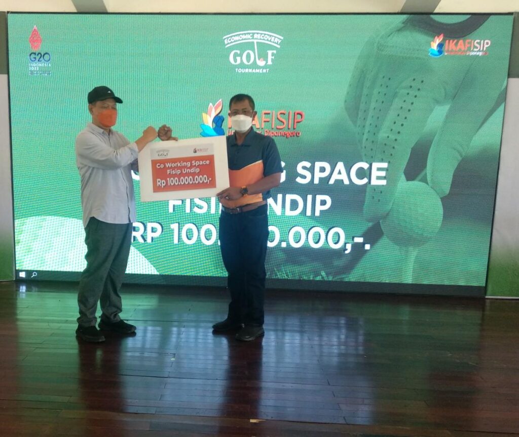 Dalam kegiatan turnamen golf terserbut terdapat juga agenda penyarahan secara simbolis beasiswa untuk 40 mahasiswa-mahasiswi Fisip Undip serta bantuan untuk peningkatan sarana-prasarana kampus Fakultas Ilmu Sosial dan Ilmu Politik Universitas Diponegoro. dalam hal ini fasiitas co-working space bagi mahasiswa. Penyerahan bantuan diterima oleh Dekan FISIP Undip Dr.Drs.Hardi Warsono, M.T, yang hadir secara langsung dalam kegiatan tersebut.