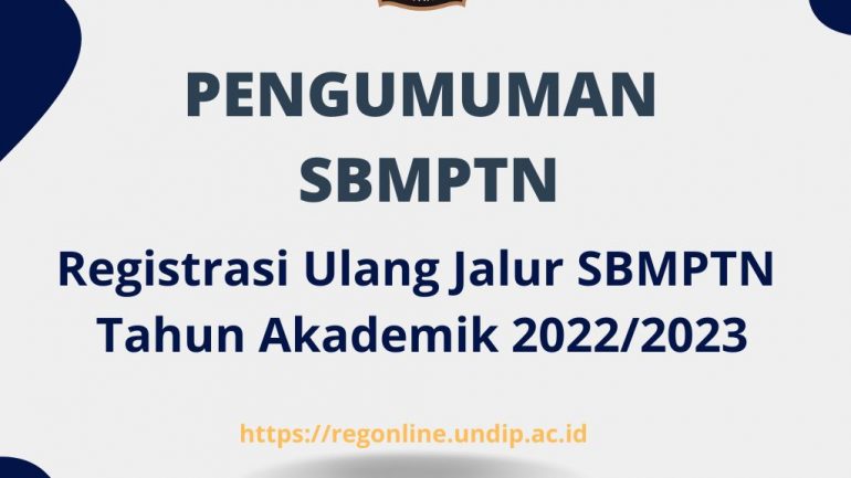 Selamat bagi Calon Mahasiswa baru Program Sarjana Jalur Seleksi Bersama Masuk Perguruan Tinggi Negeri (SBMPTN) Tahun Akademik 2022/2023 di Universitas Diponegoro. Registrasi ulang sesuai rangkaian dalam informasi berikut :