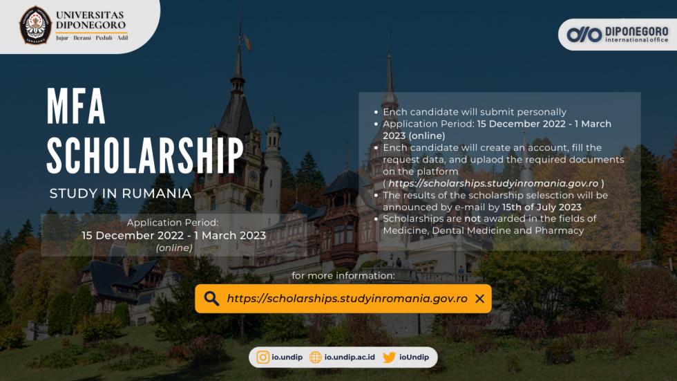 Semarang, io.undip.ac.id – Bagi Anda yang selama ini memiliki mimpi untuk belajar di negeri Twilight, kami sampaikan kabar gembira karena Pemerintah Rumania kini membuka beasiswa untuk tahun ajaran 2023-2024!