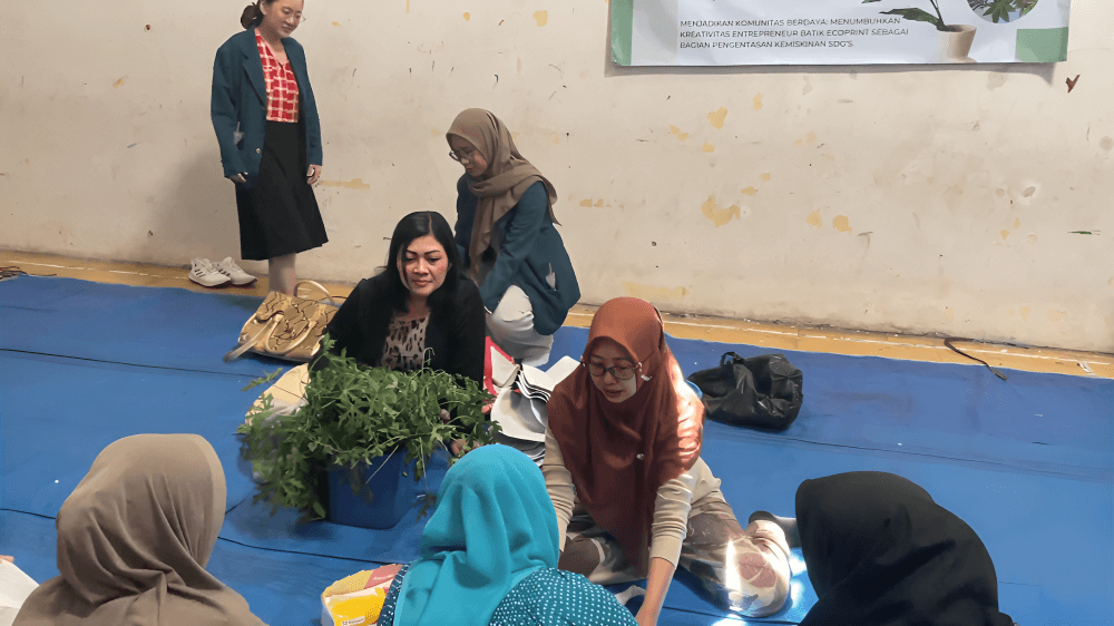Pengabdian ini didasarkan pada identifikasi masalah bahwa warga dengan ekonomi marginal membutuhkan dukungan dalam pengembangan kewirausahaan dan mengoptimalkan peran perempuan yang selama ini mayoritas hanya membantu urusan domestik rumahtangga atau membantu keluarga yang umumnya berprofesi sebagai pedagang di Kawasan Pasar Johar. Sebagai implementasi salah satu agenda Tri Dharma Perguruan Tinggi, pelatihan dari pelatihan batik ecoprint merupakan salah satu perwujudan daripada agenda Tujuan Pembangunan Berkelanjutan (SGD’s), khususnya pada poin 5 Kesetaraan Gender dan 12 Konsumsi dan Produksi yang Bertanggungjawab. Pelatihan batik ecoprint, menggunakan bahan-bahan alami yang berada di sekitar yang mudah ditemui warga, khususnya ibu rumah tangga yang berdomisili di dekat kawasan Pasar Johar. Upaya untuk menjaga lingkungan sekitar ini dapat digunakan sekaligus sebagai momentum untuk meningkatkan semangat kewirausahaan dan kesejahteraan warga. Selain menggunakan pewarna bahan alami, dan proses produksi yang menggunakan peralatan rumah tangga (dandang kukus dan kompor LPG) meringankan ongkos produksi Selanjutnya, motif yang dihasilkan terkesan lebih otentik meski menggunakan bahan yang sama karena terdapat perbedaan dalam lama pengukusan, perbedaan tekanan saat memukulkan daun atau bunga di atas kain secara manual menggunakan palu.