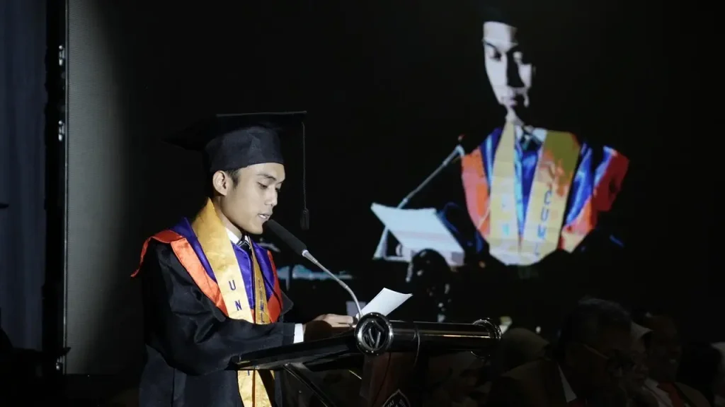 Dalam pidatonya, Azhes Melodi Saputra, mahasiswa Ilmu Pemerintahan angkatan 2021, menyampaikan bahwa FISIP Undip bukan sekadar tempat menimba ilmu, melainkan juga rumah yang membentuk karakter dan wawasan. Ia mendorong para lulusan untuk menjadi agen perubahan di masyarakat. “Pendidikan adalah senjata paling ampuh untuk mengubah dunia,” kutipannya dari Nelson Mandela, menjadi pengingat akan tanggung jawab besar yang diemban sebagai lulusan FISIP Undip untuk berkontribusi positif bagi bangsa dan negara.