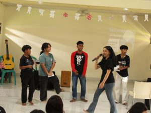 Acara dimulai sejak pukul 08.00 WIB dengan penuh semangat dan sukacita. Rangkaian kegiatan mencakup doa pembukaan, pujian penyembahan, firman Tuhan, hingga berbagai permainan yang melibatkan interaksi antara mahasiswa dan anak-anak panti. Melalui suasana yang hangat, kegiatan ini tidak hanya menghadirkan kebahagiaan, tetapi juga menumbuhkan rasa kekeluargaan dan persaudaraan di dalam kasih Kristus.
