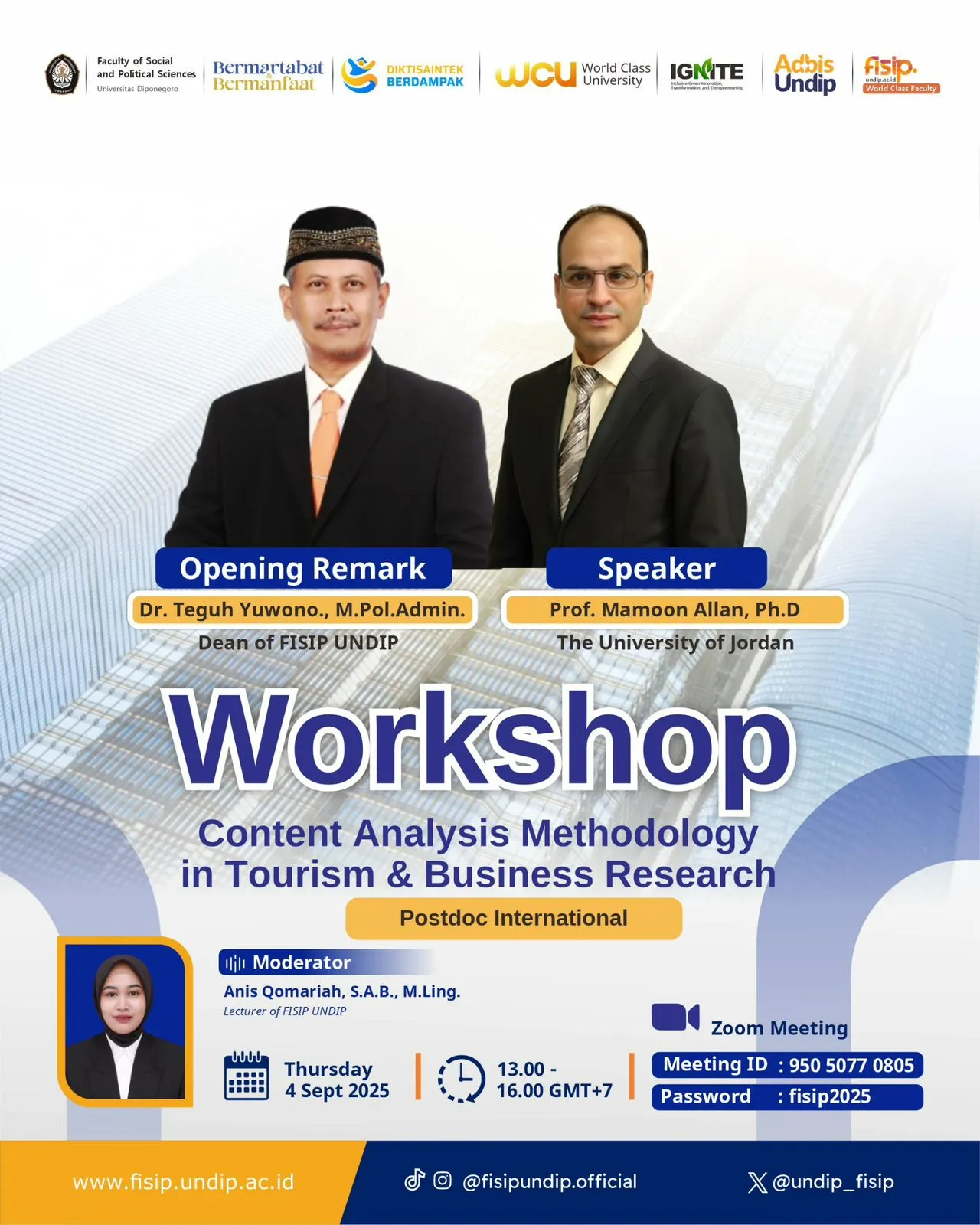 Kami mengundang Bapak/Ibu untuk mengikuti Workshop Internasional dalam rangka program Inclusive Green Innovation, Transformation & Entrepreneurship (IGNITE), Department of Business Administration, FISIP Undip, melalui dukungan WCU Program.