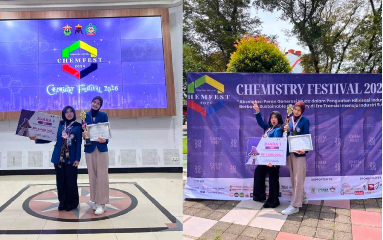 Semarang — Prestasi membanggakan kembali ditorehkan oleh mahasiswa FISIP Universitas Diponegoro. Dua mahasiswi Program Studi S-1 Ilmu Komunikasi, Fakultas Ilmu Sosial dan Ilmu Politik (FISIP) UNDIP, Mutiara Rahmisya Amalia dan Aurelia Berlian Wahyu Pratiwi, berhasil meraih Juara I dalam ajang CHEMISTRY FESTIVAL Business Plan Competition 2026 yang diselenggarakan oleh Universitas Hasanuddin di Makassar pada 13–16 Februari 2026.