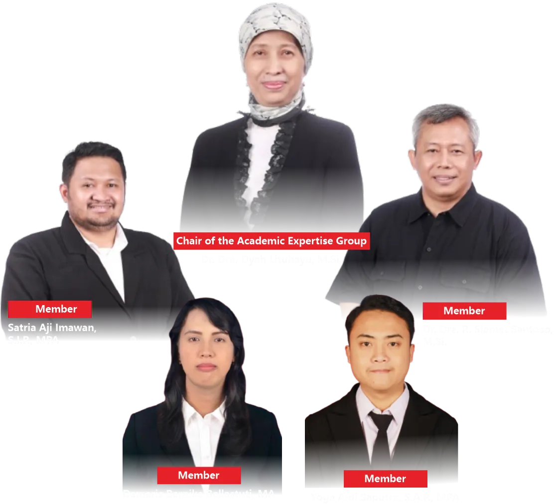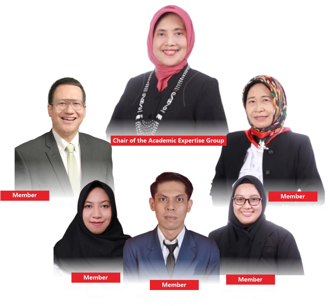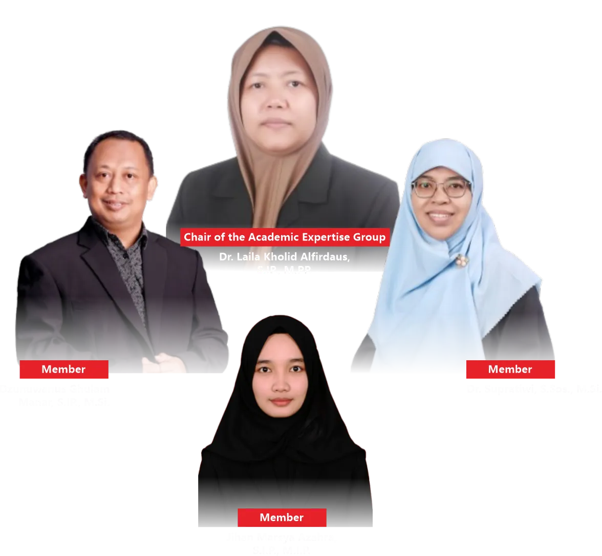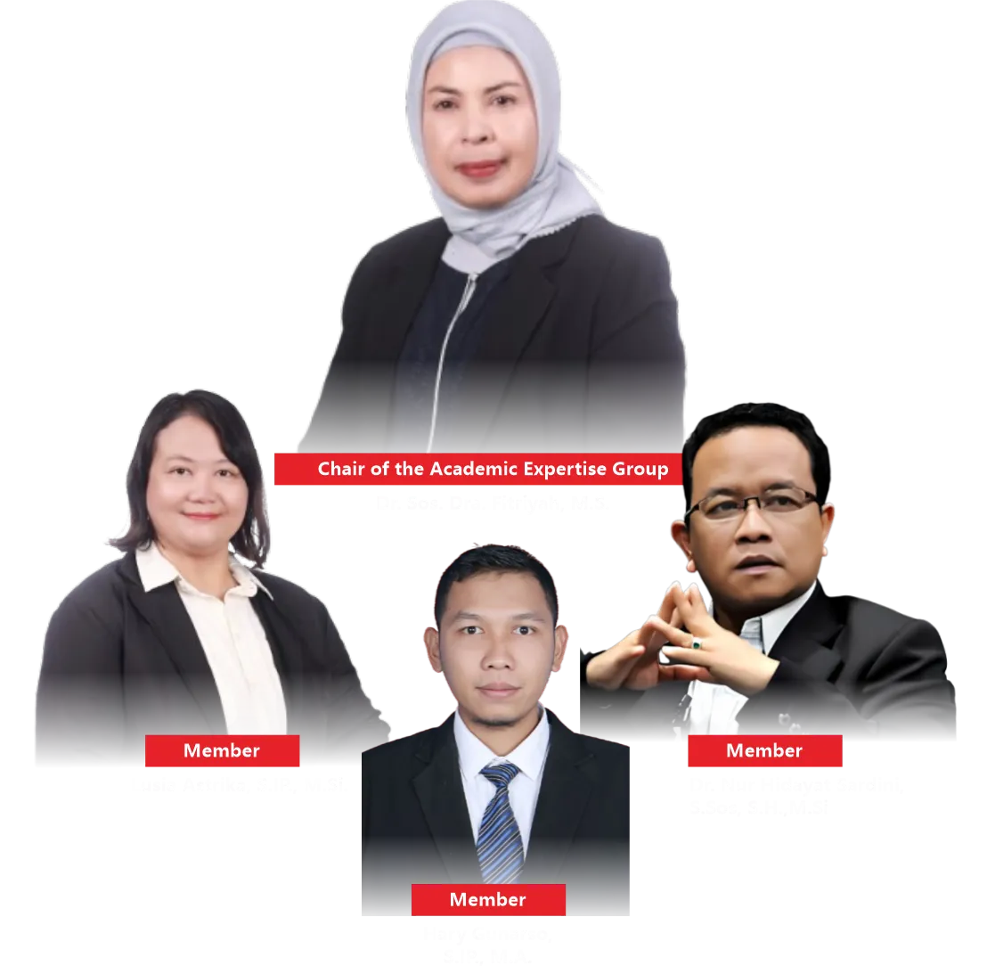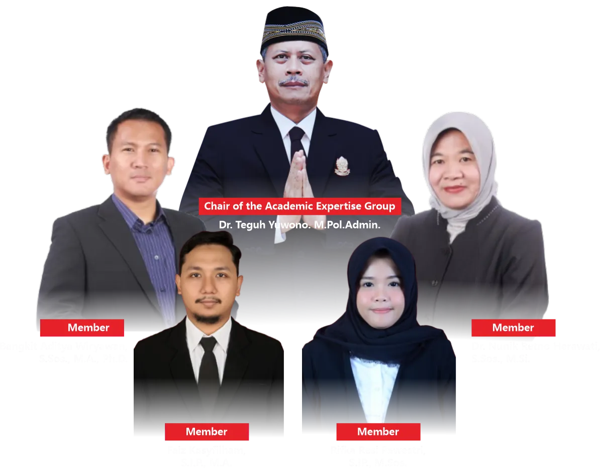 The Academic Expertise Group on Political Policy Analysis focuses on the study of political policy analysis within the context of governance and development. Through the World Class University program, this group conducts a Domestic Post-Doctoral program aimed at enhancing research capacity and producing internationally standard scientific publications. Activities include publications in reputable Scopus-indexed international journals, preparation of training/workshop materials, guest lectures, and formulation of collaborations formalized through agreements. All these activities are directed toward strengthening academic networks, improving research quality, and making a significant contribution to the development of government science and policy analysis in Indonesia.