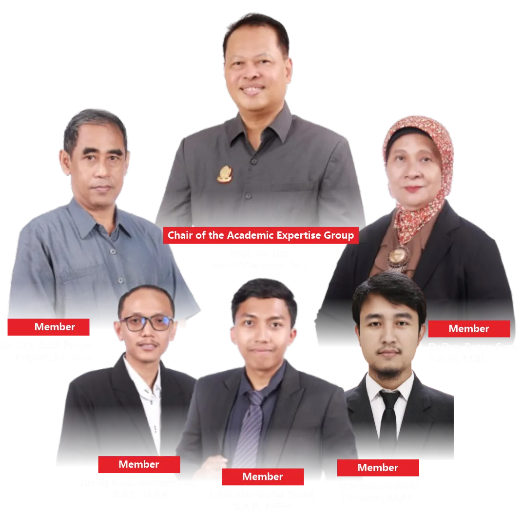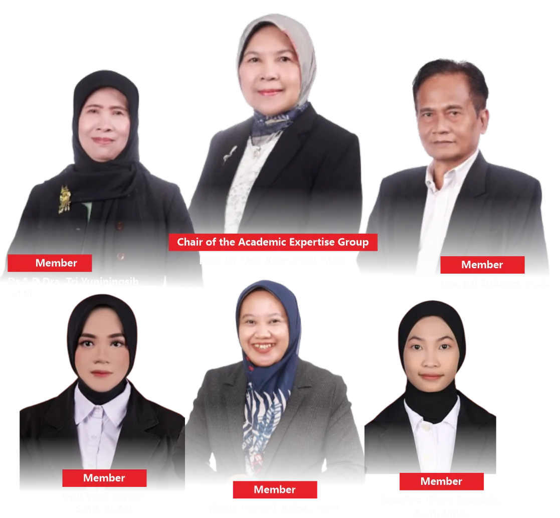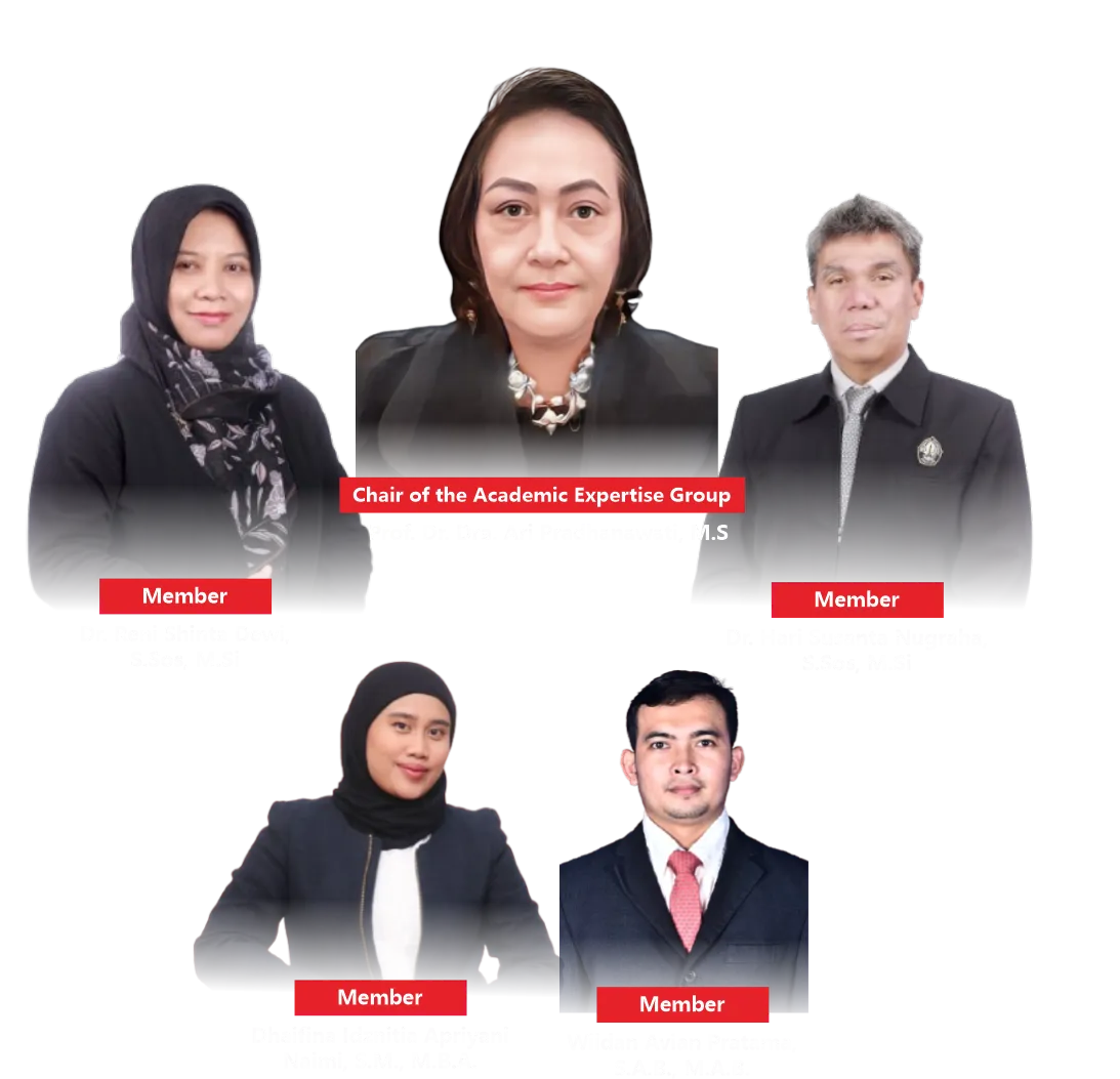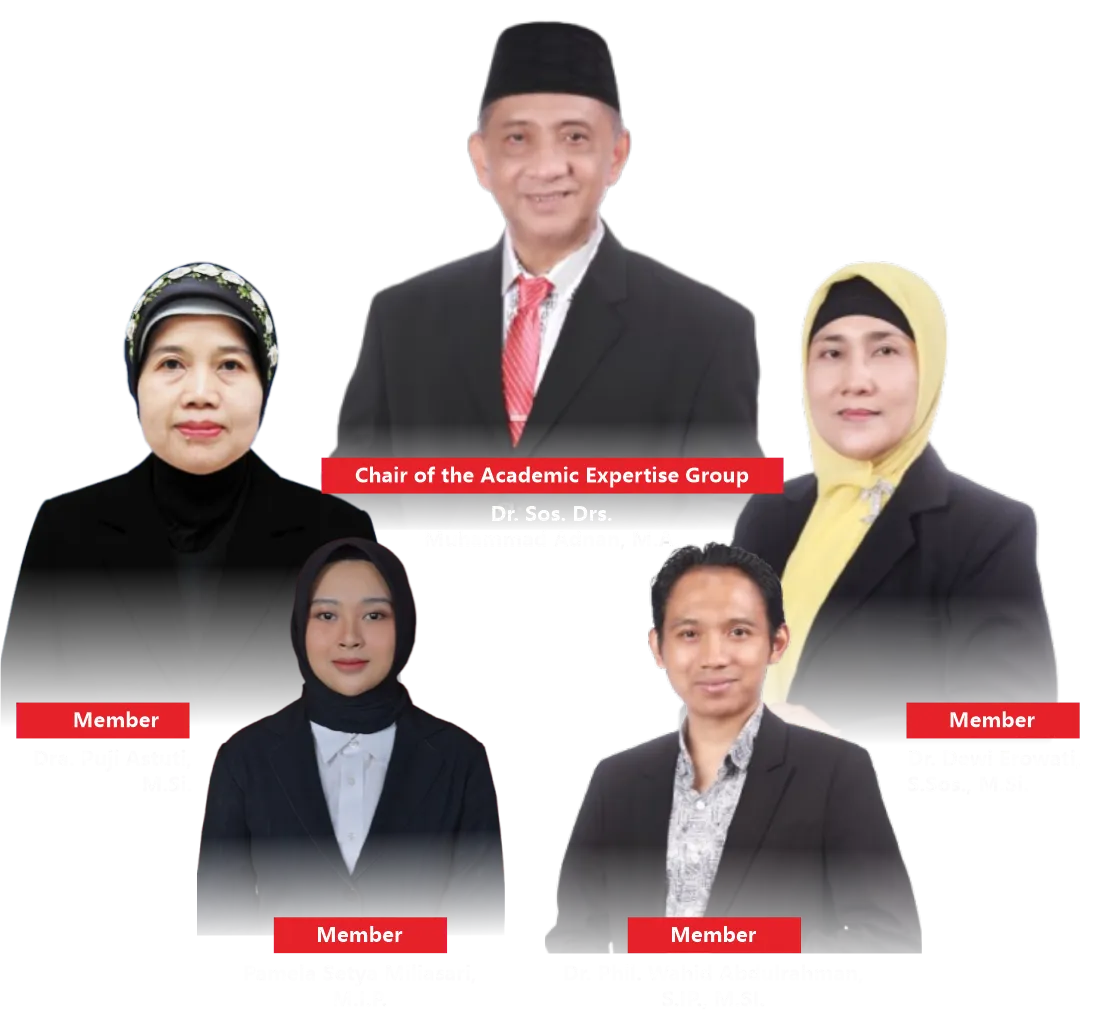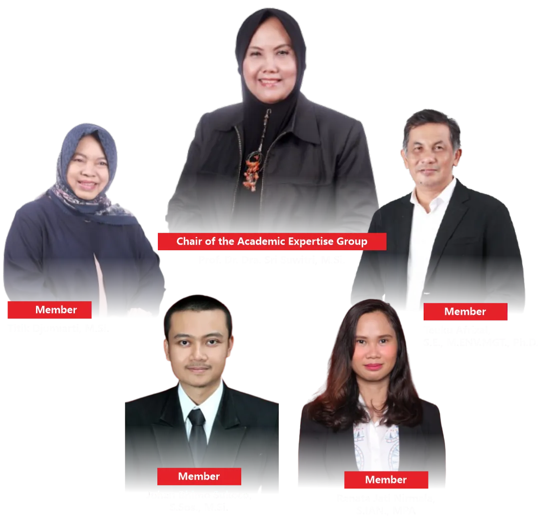 The Academic Expertise Group on Political Policy Analysis focuses on the study of political policy analysis within the context of governance and development. Through the World Class University program, this group conducts a Domestic Post-Doctoral program aimed at enhancing research capacity and producing internationally standard scientific publications. Activities include publications in reputable Scopus-indexed international journals, preparation of training/workshop materials, guest lectures, and formulation of collaborations formalized through agreements. All these activities are directed toward strengthening academic networks, improving research quality, and making a significant contribution to the development of government science and policy analysis in Indonesia.